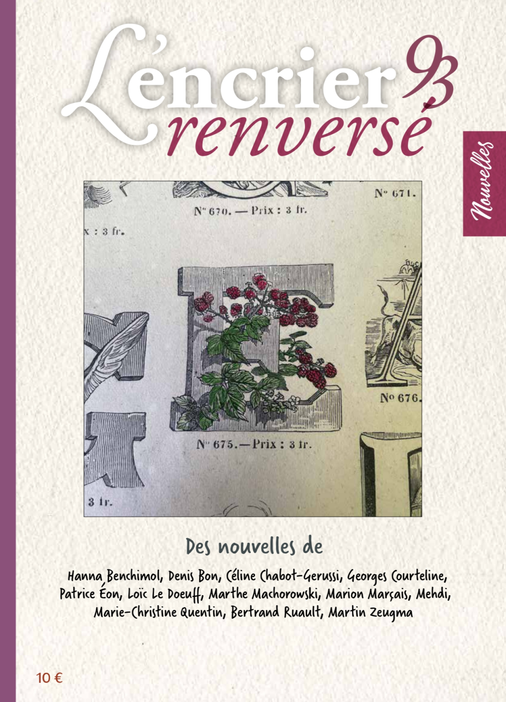 [52 pages] La jeune femme de la plage, Denis Bon ; Chloé, Mehdi ; La coupe et les lèvres, Marthe Machorowski ; Avant d’oublier, Martin Zeugma ; Lucides ?, Marie-Christine Quentin ; Une affaire en or, Marion Marçais ; Louise, Bertrand Ruault ; J’ai choisi de vivre, Hanna Benchimol ; Métamorphose, Céline Chabot Gerussi ; Le voyage d’Apolline, Patrice Éon ; Amitié de poilus, Loïc Le Doeuff. Rubriques : Arrière-court (Tout ce que tu voudras, Georges Courteline), Dans la ruelle, À propos de bottes…